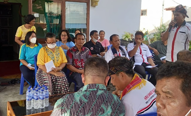 Jambipos, Muarojambi- Organisasi masyarakat Horas Bangso Batak (HBB) Provinsi Jambi dan DPC HBB Muarojambi bersama Kapolda Jambi, Irjen Pol A Rachmad Wibowo yang didampingi Direktur Reserse Kriminal Umum (Direskrimum) Polda Jambi, Komisaris Besar Polisi (Kombes Pol) Andri Ananta Yudhistira, Kabid Humas Polda Jambi, Kombes Pol Mulia Prianto menjenguk keluarga almarhum Brigpol Nopryansah Yoshua Hutabarat (NYH) di Unit I, Desa Suka Makmur, Kecamatan Sungaibahar, Kabupaten Muarojambi, Provinsi Jambi, Minggu (24/7/2022).